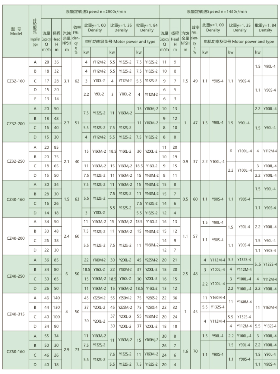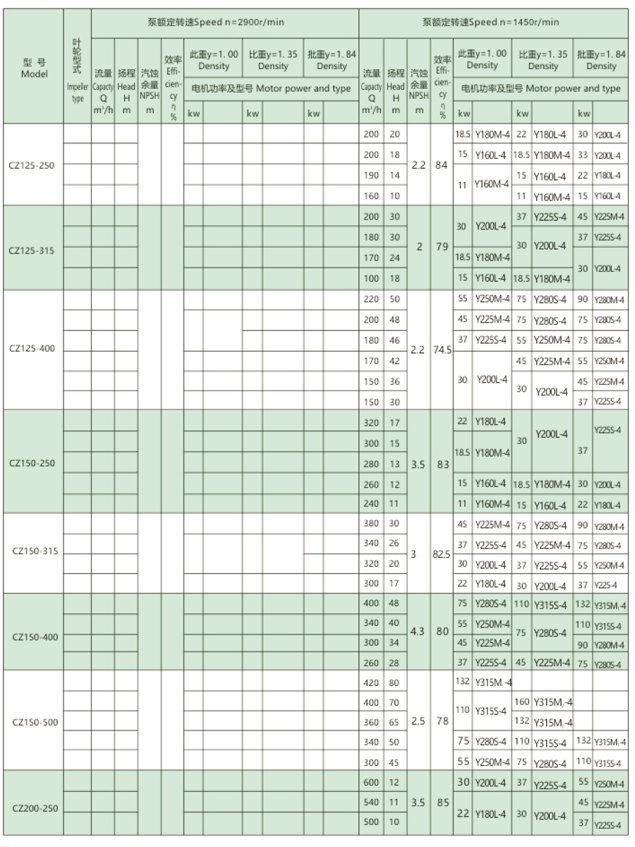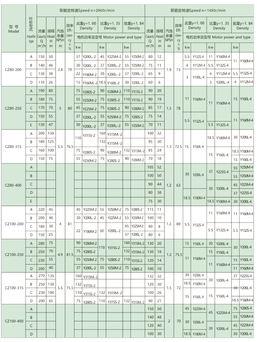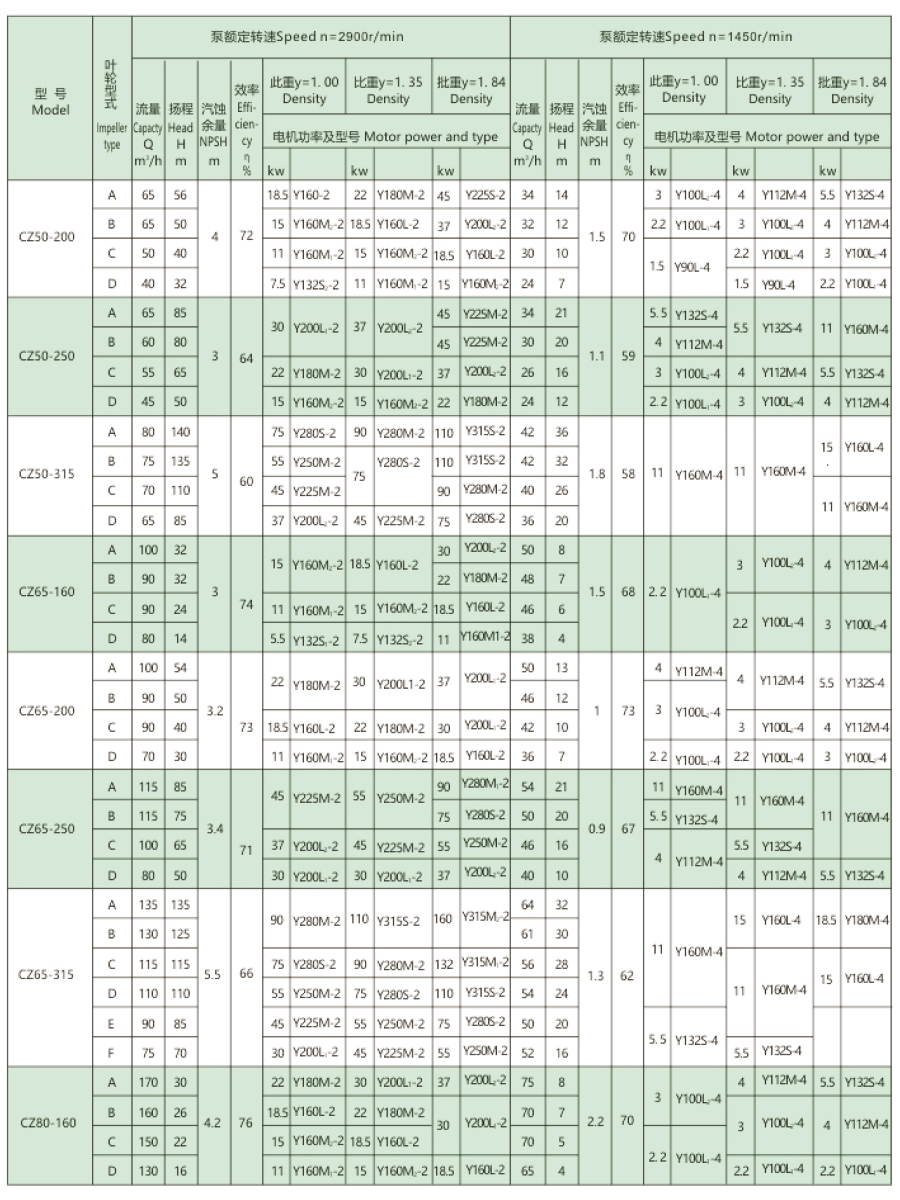 CZ系列标准化工泵和性能范围包括了IH系列标准,化工泵所有性能,其效率、汽蚀性能等指标均超过IH型泵,可与IH型泵进行单机互换。